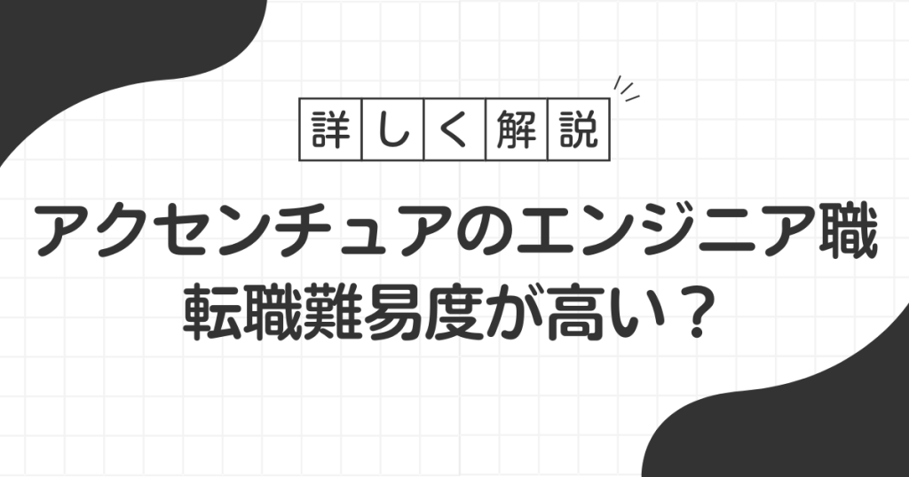 アクセンチュアのエンジニア職への転職を検討していませんか? 世界最大級のコンサルティングファームであるアクセンチュアは、多くのエンジニアが憧れる転職先の一つです。しかし、その人気の高さゆえに転職難易度も決して低くありません。 実は、アクセ... -