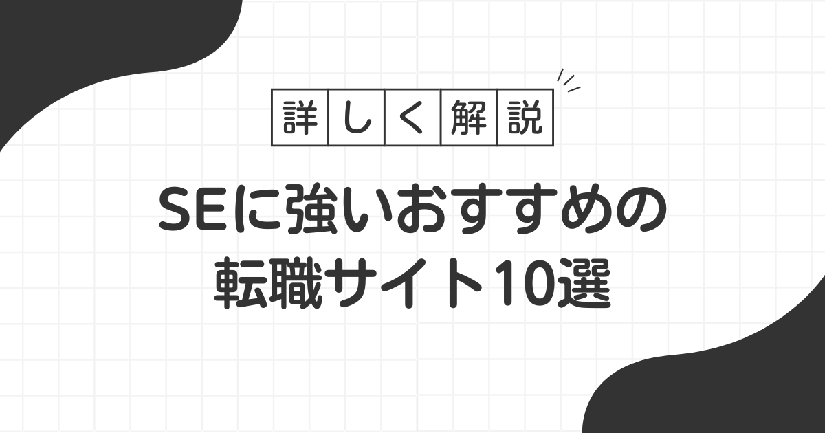 この記事では、SEの転職に強いおすすめの転職サイト10選を詳しく紹介します。各サイトの特徴から利用の流れ、転職成功のポイントまで、SE転職に必要な情報をまとめました。